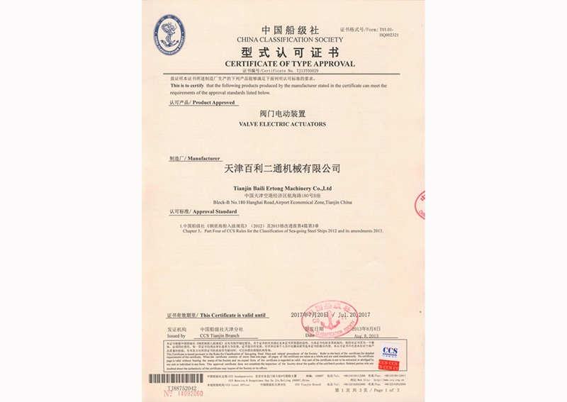 中國船級社型式認可證書