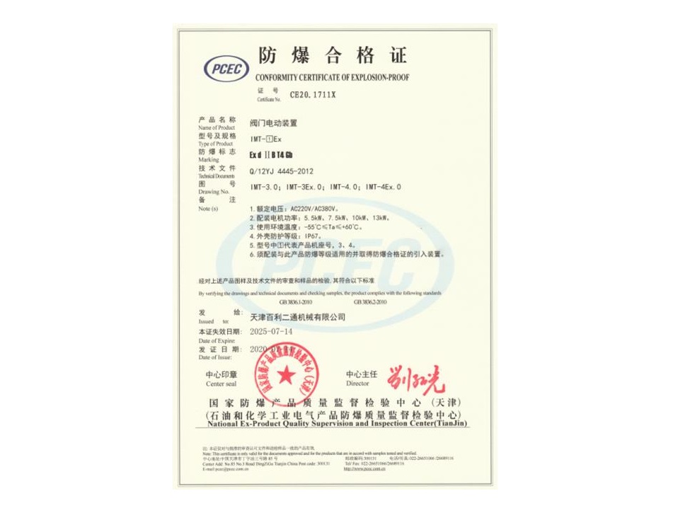 IMT3-4Ex防爆合格證