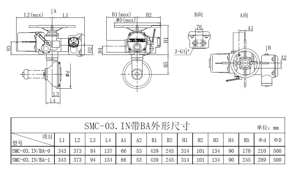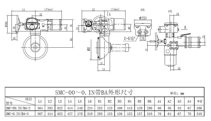 SMC/BA系列電動裝置是SMC系列中小轉矩多回轉電動裝置與BA圓錐齒輪減速器的一種組合型式,它適合閘閥、截止閥等多回轉閥門的驅動控制。SMC/BA電動裝置具有以下特點:以較小轉矩規(guī)格的SMC電動裝置與BA減速器組合可獲得更大的輸出轉矩。在輸出轉速允許的條件下,選用該產品能夠提高所選電動裝置規(guī)格的通用性,便于產品的使用、維護。
