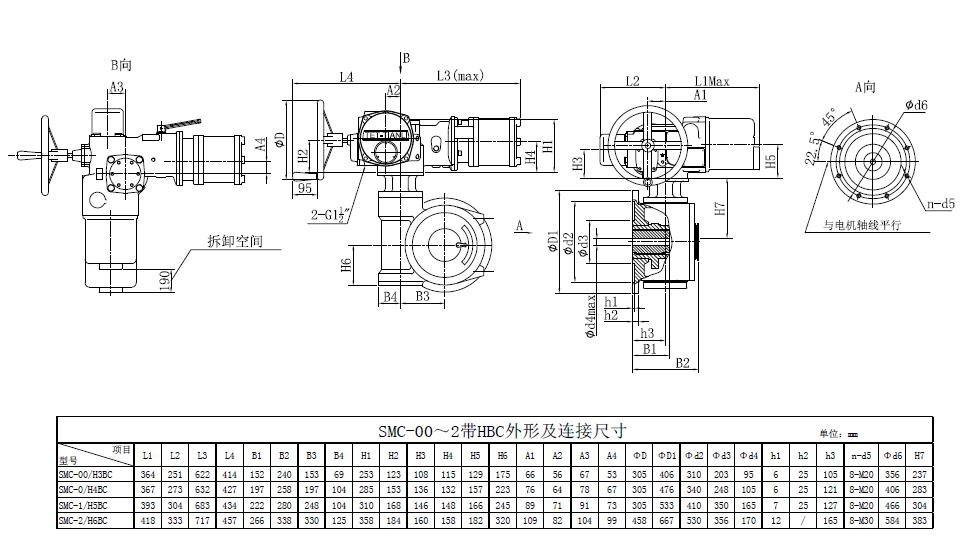 SMC/HBC系列電動(dòng)裝置是SMC系列多回轉(zhuǎn)電動(dòng)裝置與HBC蝸輪減速器的組合型式,它適合球閥、蝶閥等部分回轉(zhuǎn)閥門的驅(qū)動(dòng)控制。SMC/HBC電動(dòng)裝置具有以下特點(diǎn):結(jié)構(gòu)設(shè)計(jì)堅(jiān)固可靠,產(chǎn)品規(guī)格齊全,驅(qū)動(dòng)轉(zhuǎn)矩范圍大且動(dòng)力輸出穩(wěn)定, 具有良好的自鎖性能。 HBC輸出軸結(jié)構(gòu)獨(dú)特,裝有與閥桿連接的漸開線花鍵接頭,產(chǎn)品的安裝調(diào)試方便。