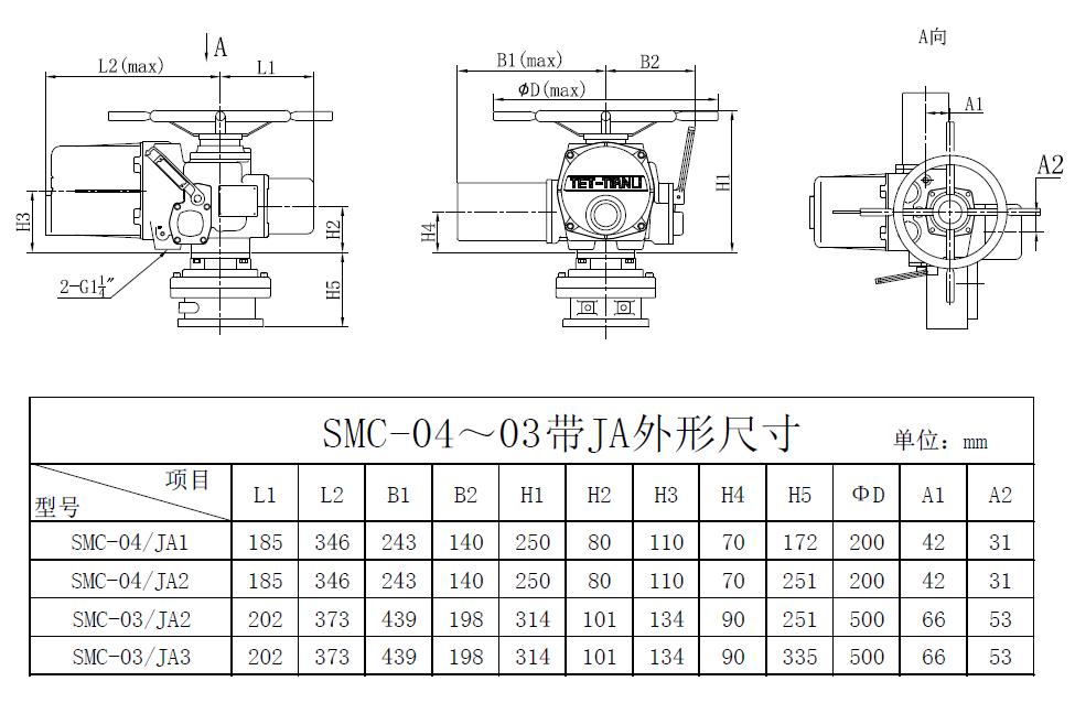 SMC/JA系列閥門電動(dòng)裝置是部分回轉(zhuǎn)型閥門電動(dòng)裝置,適用于球閥、蝶閥等類型閥門以及電動(dòng)風(fēng)門。其結(jié)構(gòu)形式為組合式,由SMC多回轉(zhuǎn)電動(dòng)裝置與JA部分回轉(zhuǎn)減速裝置相組合而成。該系列產(chǎn)品所適用的環(huán)境條件、溫度、濕度、海拔、防護(hù)等級(jí)均能達(dá)到SMC相應(yīng)規(guī)格產(chǎn)品的水平。