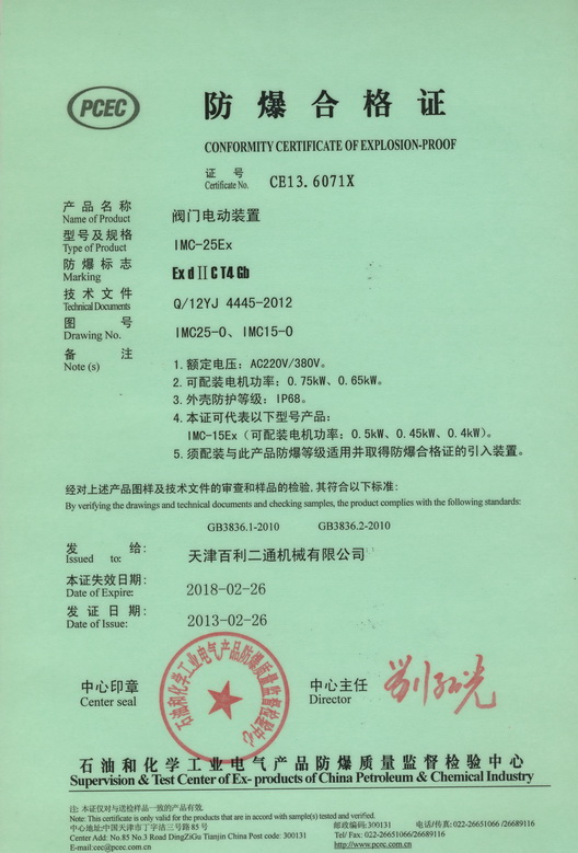 IMC Conformity Certification of Explosion-proof