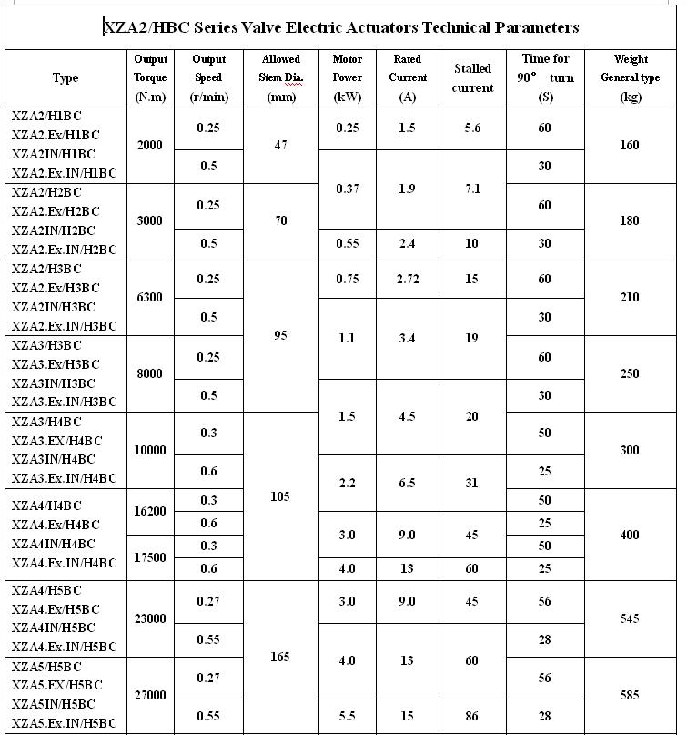 XZA/HBC series ,the combination of XZA series multi-turn electric actuators and HBC worm speed reducer , was used to control ball valve ,butterfly valve and other part-turn valve actuators.This series actuators have features as firm constructure, multiple standard,large torque rang,stable output and self-locking ability.In order to gear into valve rod,HBC has a involute serration joint.It is easy to test and adjust.