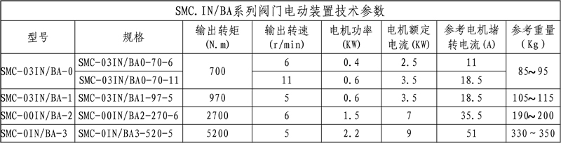 SMC/BA系列電動裝置是SMC系列中小轉矩多回轉電動裝置與BA圓錐齒輪減速器的一種組合型式,它適合閘閥、截止閥等多回轉閥門的驅動控制。SMC/BA電動裝置具有以下特點:以較小轉矩規(guī)格的SMC電動裝置與BA減速器組合可獲得更大的輸出轉矩。在輸出轉速允許的條件下,選用該產(chǎn)品能夠提高所選電動裝置規(guī)格的通用性,便于產(chǎn)品的使用、維護。