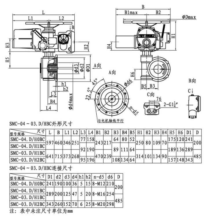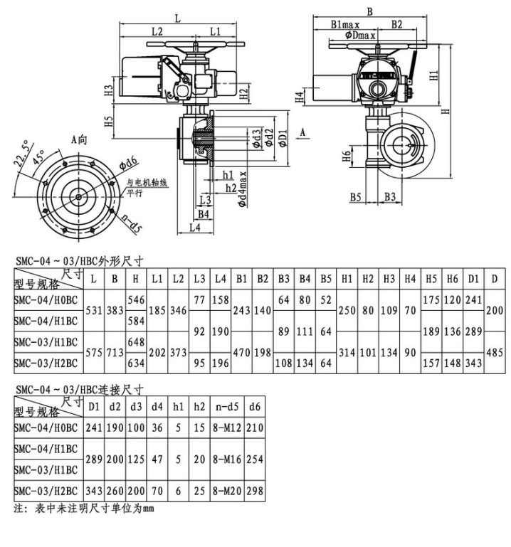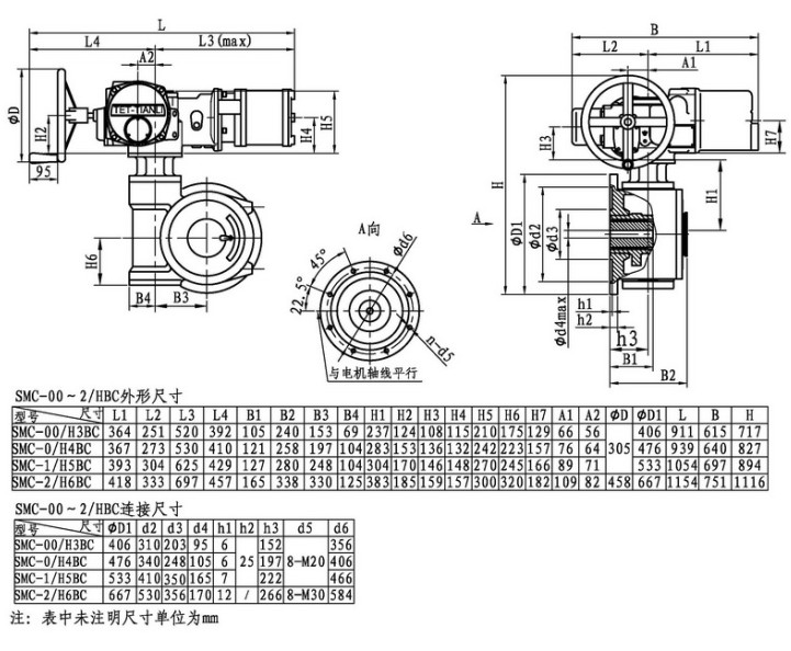 SMC/HBC系列電動裝置是SMC系列多回轉(zhuǎn)電動裝置與HBC蝸輪減速器的組合型式,它適合球閥、蝶閥等部分回轉(zhuǎn)閥門的驅(qū)動控制。SMC/HBC電動裝置具有以下特點:結(jié)構(gòu)設計堅固可靠,產(chǎn)品規(guī)格齊全,驅(qū)動轉(zhuǎn)矩范圍大且動力輸出穩(wěn)定, 具有良好的自鎖性能。 HBC輸出軸結(jié)構(gòu)獨特,裝有與閥桿連接的漸開線花鍵接頭,產(chǎn)品的安裝調(diào)試方便。