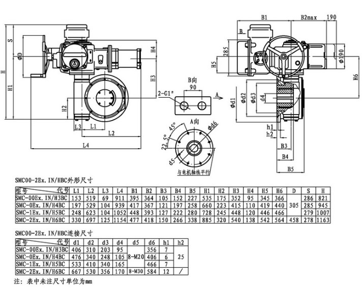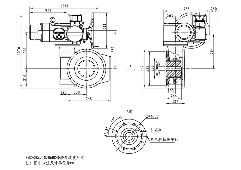 SMC/HBC系列電動裝置是SMC系列多回轉(zhuǎn)電動裝置與HBC蝸輪減速器的組合型式,它適合球閥、蝶閥等部分回轉(zhuǎn)閥門的驅(qū)動控制。SMC/HBC電動裝置具有以下特點:結(jié)構(gòu)設計堅固可靠,產(chǎn)品規(guī)格齊全,驅(qū)動轉(zhuǎn)矩范圍大且動力輸出穩(wěn)定, 具有良好的自鎖性能。 HBC輸出軸結(jié)構(gòu)獨特,裝有與閥桿連接的漸開線花鍵接頭,產(chǎn)品的安裝調(diào)試方便。