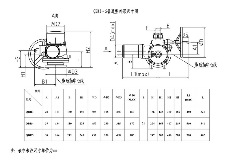 QBR3~QBR5是我公司研制的部分回轉(zhuǎn)閥門(mén)電動(dòng)裝置,控制轉(zhuǎn)矩范圍:900N.m~12000N.m。該電動(dòng)裝置可與球閥﹑蝶閥等閥瓣做90°回轉(zhuǎn)的閥門(mén)組合成電動(dòng)閥門(mén),其功能是控制閥門(mén)的啟閉。該電動(dòng)裝置能夠進(jìn)行單機(jī)或多機(jī)室內(nèi)控制遠(yuǎn)距離控制電動(dòng)操作和現(xiàn)場(chǎng)手動(dòng)或電動(dòng)操作,可廣泛地應(yīng)用在具有管道閥門(mén)的工業(yè)系統(tǒng)。該產(chǎn)品的防護(hù)等級(jí)為IP67,隔爆型產(chǎn)品(型號(hào)中有Ex)的隔爆等級(jí) 為dⅡBT4。