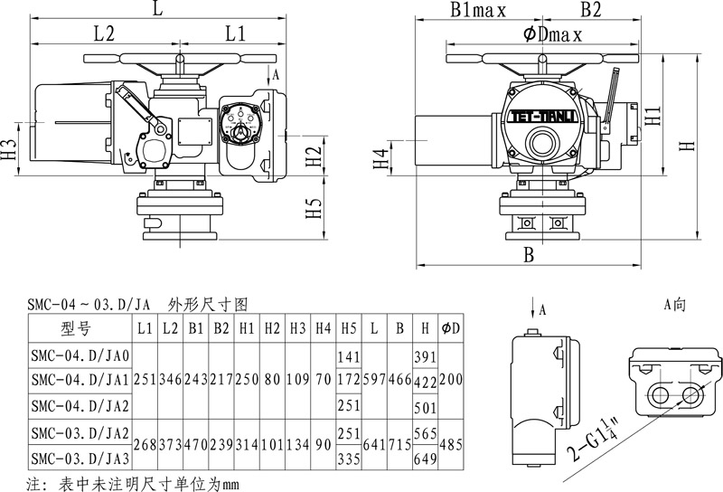 SMC/JA系列閥門電動裝置是部分回轉(zhuǎn)型閥門電動裝置,適用于球閥、蝶閥等類型閥門以及電動風(fēng)門。其結(jié)構(gòu)形式為組合式,由SMC多回轉(zhuǎn)電動裝置與JA部分回轉(zhuǎn)減速裝置相組合而成。該系列產(chǎn)品所適用的環(huán)境條件、溫度、濕度、海拔、防護(hù)等級均能達(dá)到SMC相應(yīng)規(guī)格產(chǎn)品的水平。