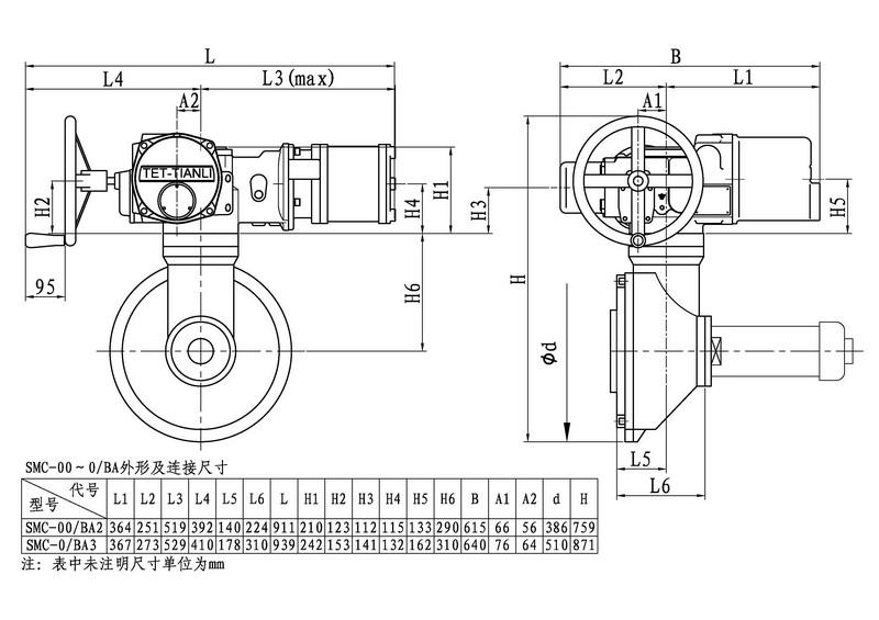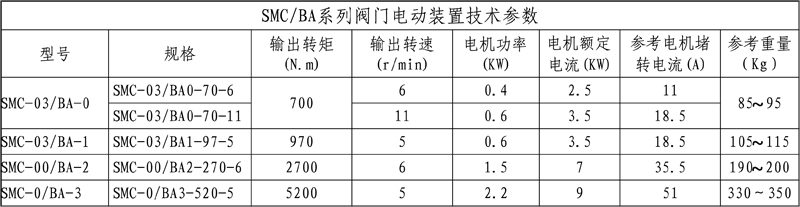SMC/BA系列電動裝置是SMC系列中小轉(zhuǎn)矩多回轉(zhuǎn)電動裝置與BA圓錐齒輪減速器的一種組合型式,它適合閘閥、截止閥等多回轉(zhuǎn)閥門的驅(qū)動控制。SMC/BA電動裝置具有以下特點:以較小轉(zhuǎn)矩規(guī)格的SMC電動裝置與BA減速器組合可獲得更大的輸出轉(zhuǎn)矩。在輸出轉(zhuǎn)速允許的條件下,選用該產(chǎn)品能夠提高所選電動裝置規(guī)格的通用性,便于產(chǎn)品的使用、維護。